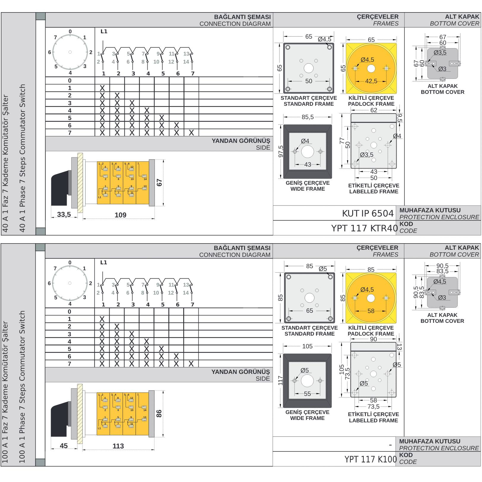 Step/step commutator switch of rotary cam packet group 0-1-2-3-4-5-6-7, YPT117K, manufacturer OPAŞ (Turkey)