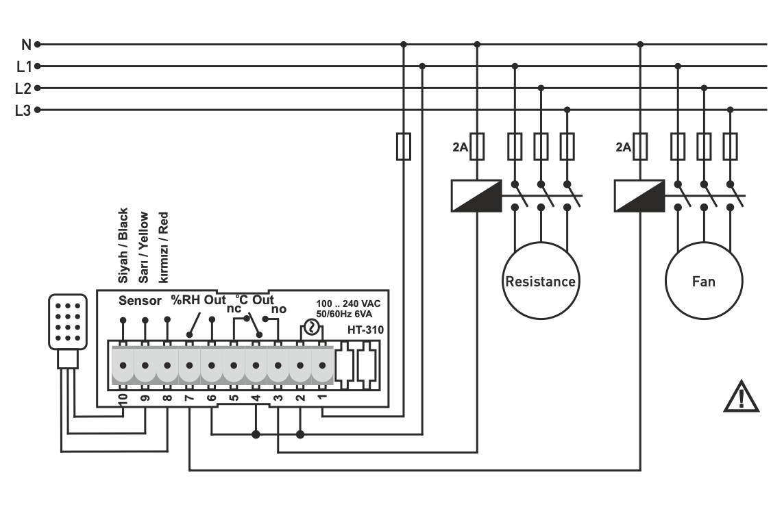 • %RH Output – Relay (NO), 250VAC, 2A, Resistive load