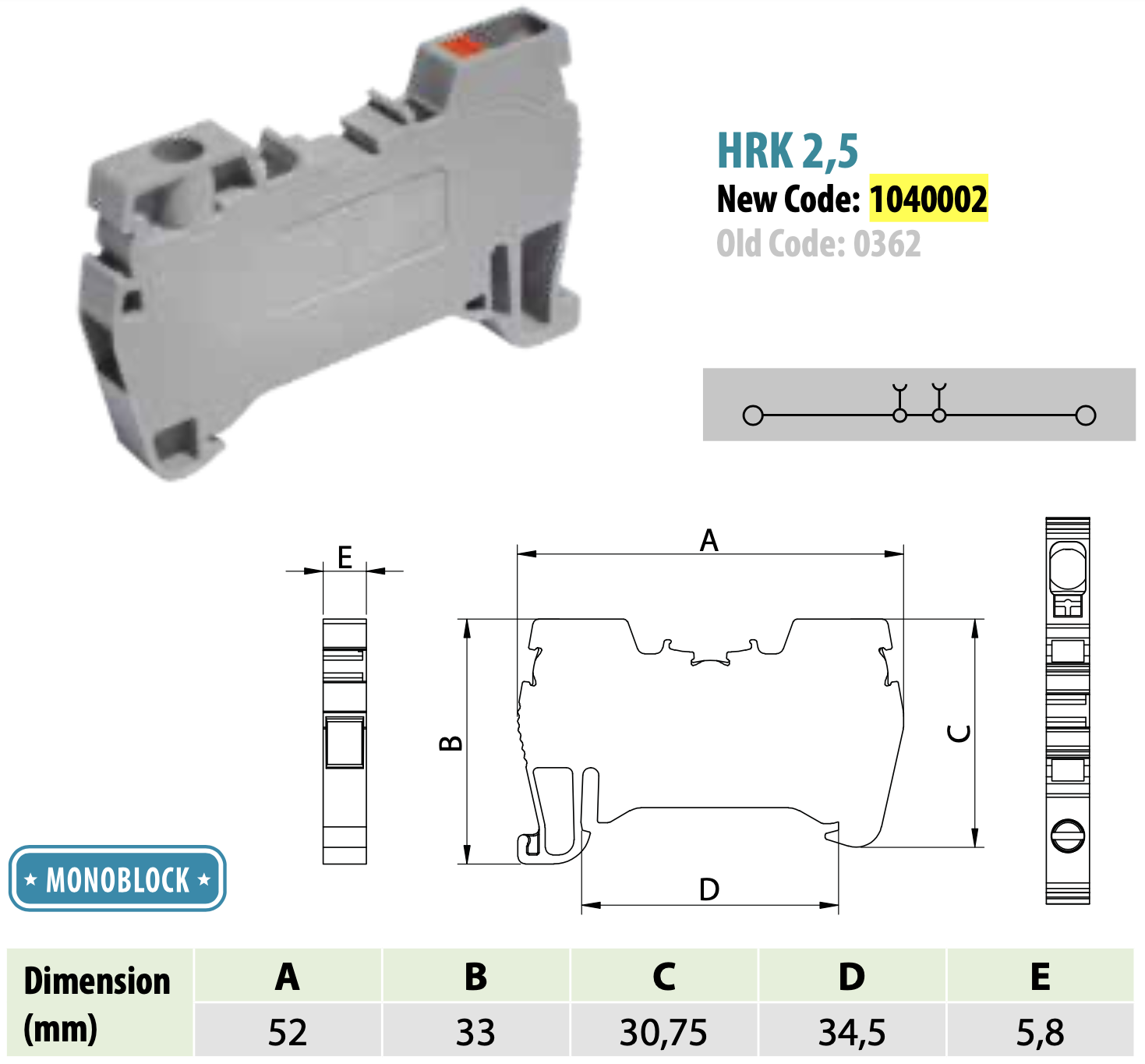 Hybrid busbar rail connector / DIN rail terminal 2-wire grey, ONKA, made in Turkey