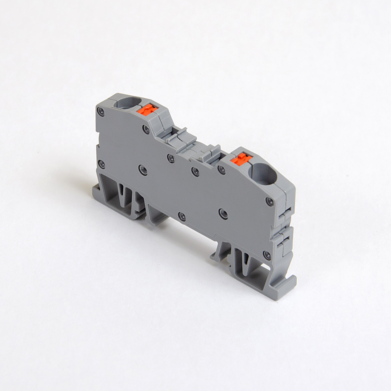 Spring busbar rail connector / DIN rail terminal 2-wire, retractable contact, grey, ONKA, made in Turkey