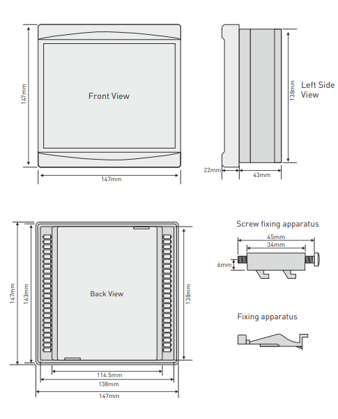 Controlador de potencia reactiva RGT-12 SVC - 12 escalones + SVC, LCD, RS485 MODBUS RTUdimensiones147 × 147 mmfabricanteTENSE (Turquía)