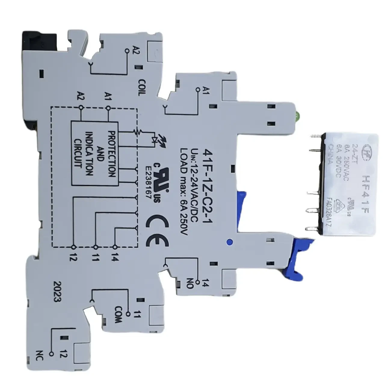 Auxiliary relay / isolating relay / relay module – socket + LED relay, 6 A, NO+NC, DIN rail mounted