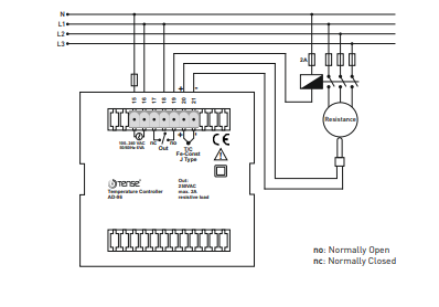 Thermostat / 2-point temperature controller for panel mounting ON/OFF ON/OFF or Proportional control mode, measuring range 0°C … +400°C, resolution / step 1ºC (made in Turkey, TENSE)