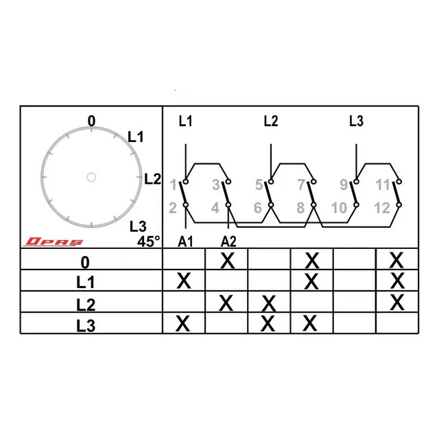 Interruptor voltímetro 0-L1N-L2N-L3N - interruptor de paquete de leva giratoria VOLTMETER, YET3V2M, OPAŞ (Turquía)